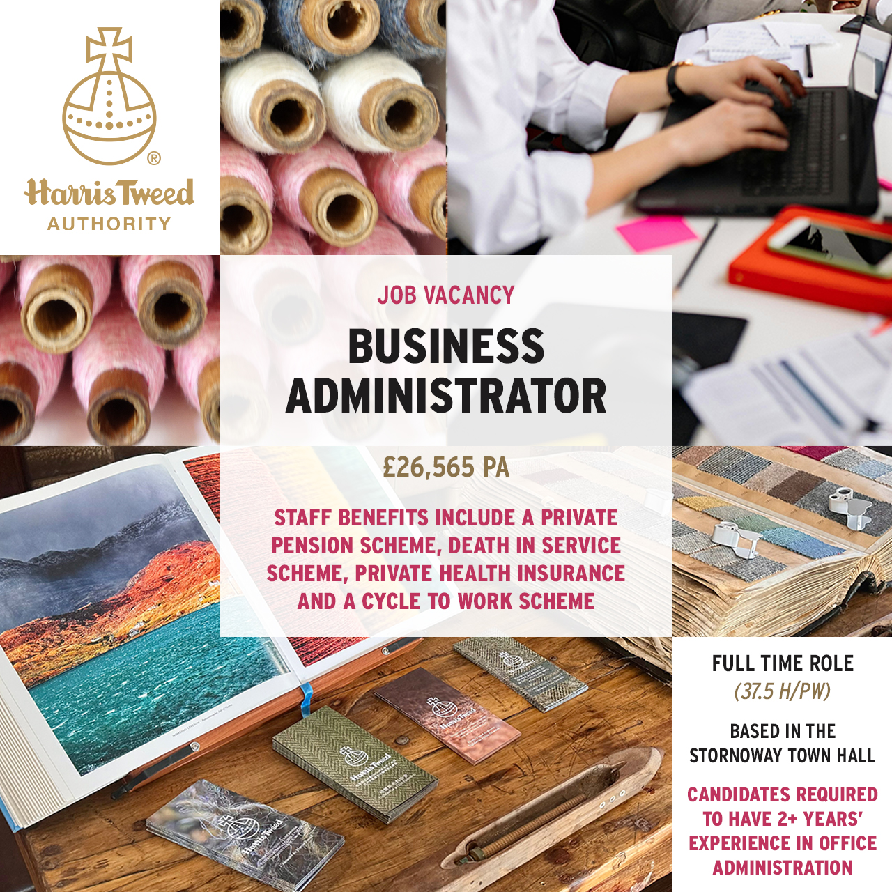 The Harris Tweed Authority is seeking to appoint a Business Administrator to carry out a broad range of front line and administrative duties to support the Office Manager, Chief Executive, Board members and other staff in our small but busy office within Stornoway Town Hall.