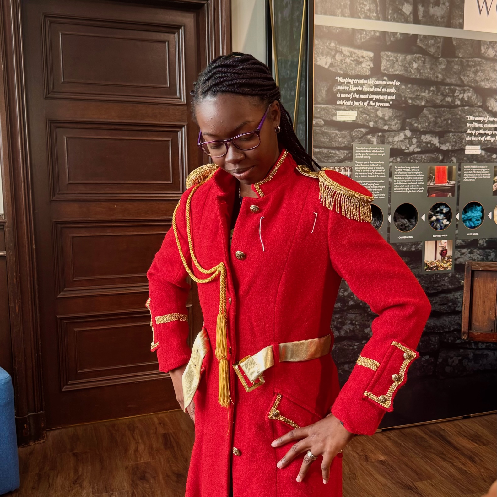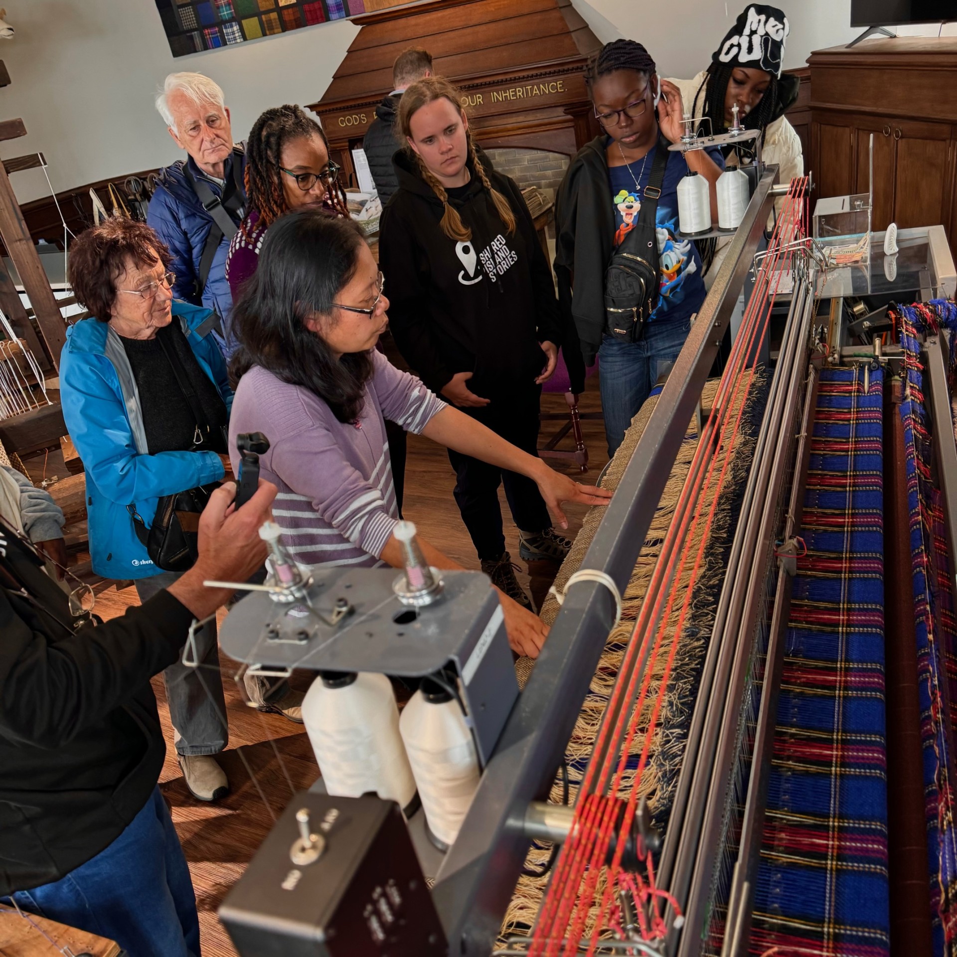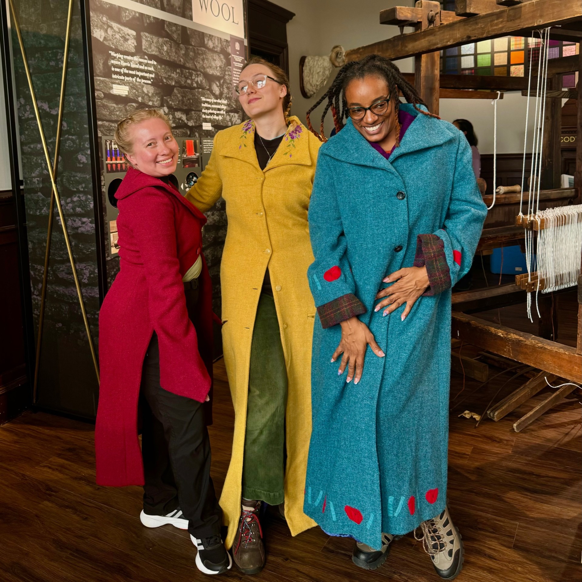Our talented weaver Minnie Hooper led the tour, giving guests a hands-on experience at the loom and a delightful chance to try on and style themselves in Harris Tweed creations.